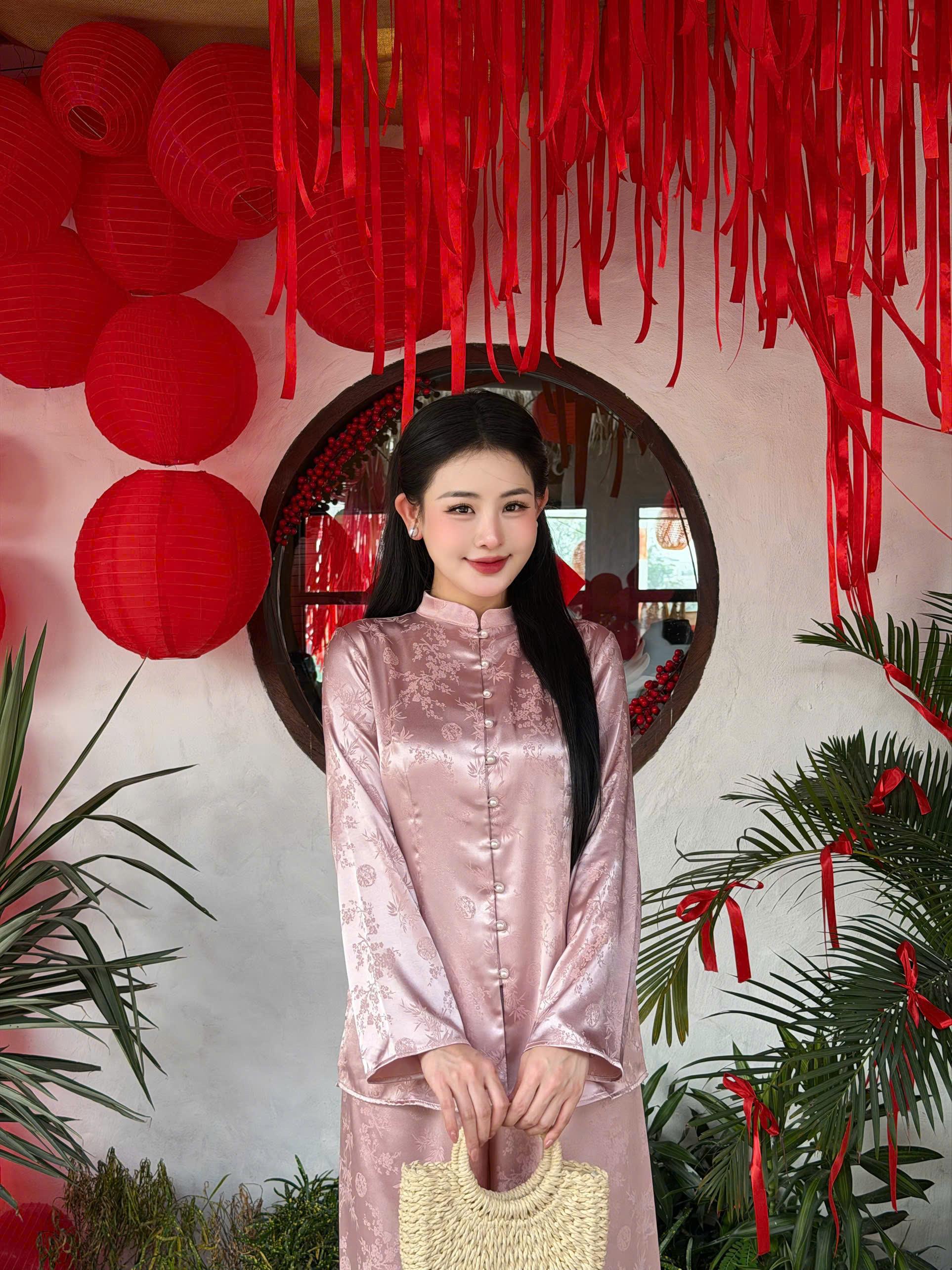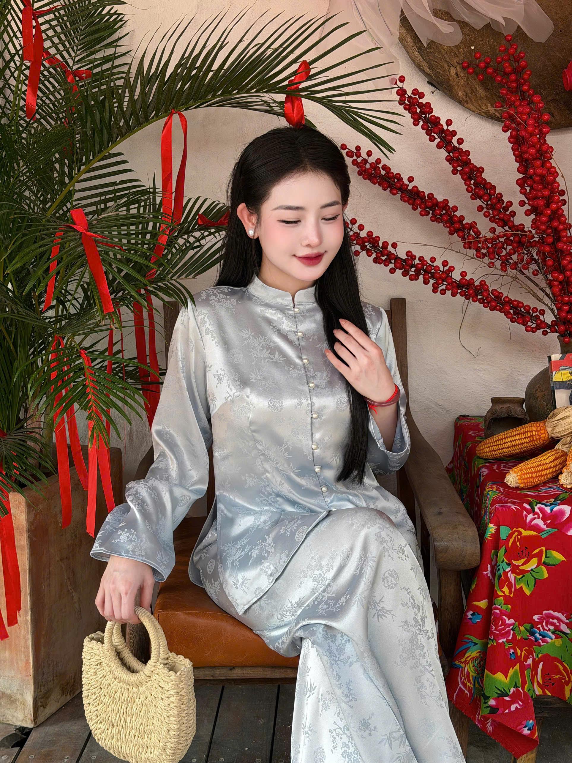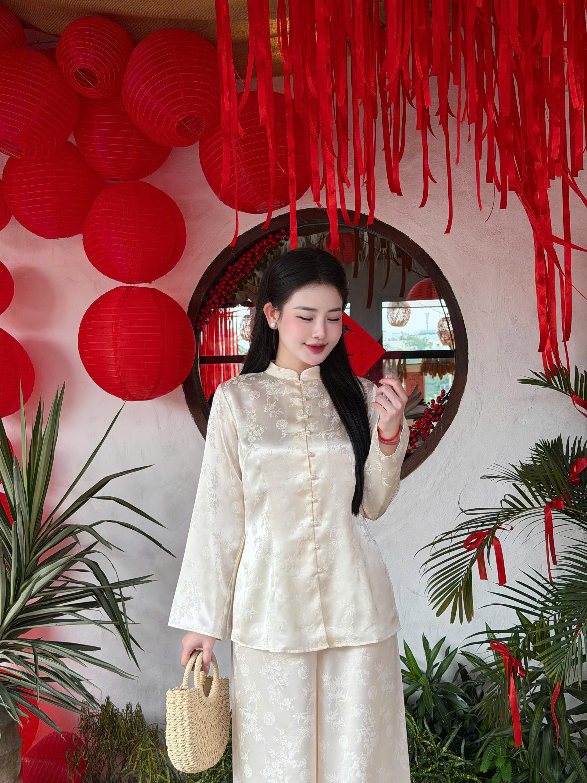 Set đồ bao gồm áo bà ba và quần lam, thiết kế chiết eo giúp tôn dáng và tạo nên vẻ ngoài tiểu thư. 🎀